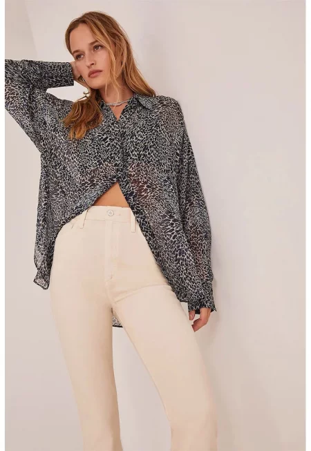 Обемна риза с принт на стенопис и изрязана предна част - Бял