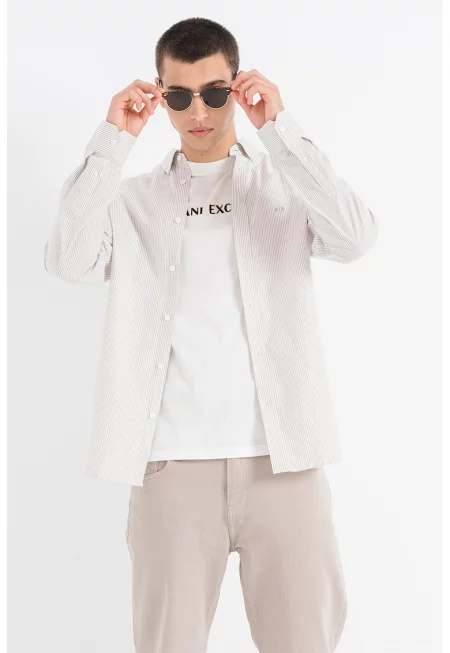 Риза от лиосел с джоб - Мръснобял/Тъмносин
