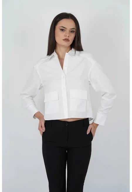 Къса риза с два предни джоба - Бял
