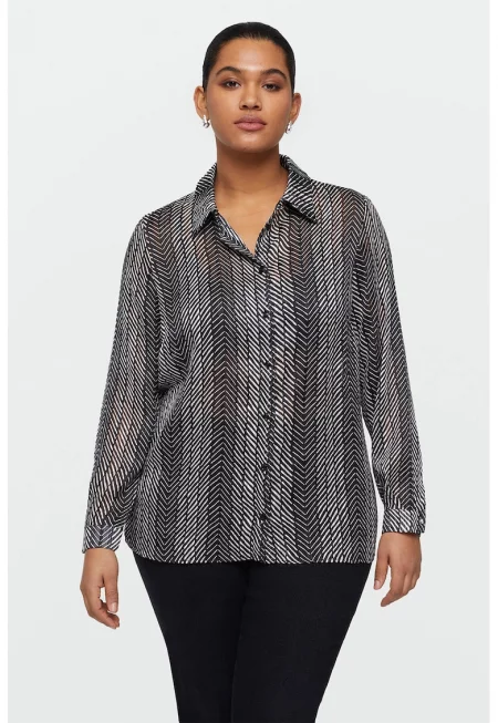 Памучна риза на каре с дълги ръкави - Черен/Тъмносин