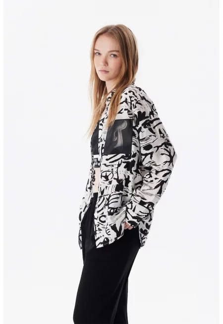 Памучна риза с дълги ръкави - Бял/Светло сив