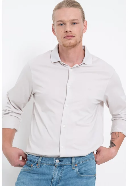 Слим риза с памук - Бял/Мръснобял