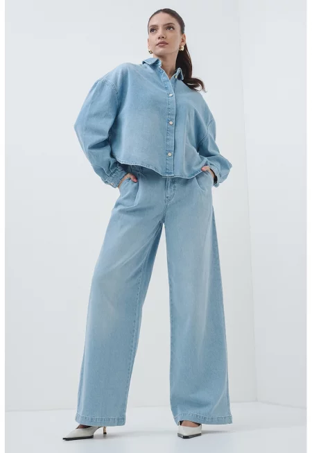 Свободна риза от деним - Светлосин меланж