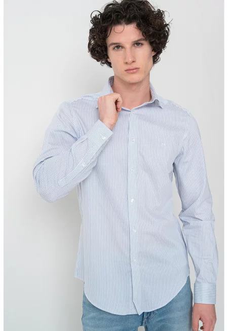 Риза с райе - Бял/Прашно синьо