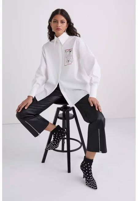 Дамска риза с дълъг ръкав - Annamue - кремава - Бял