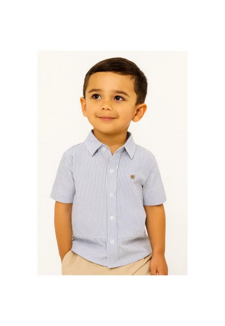 Синя риза с флорален принт и бродирани детайли - 4819T M9 17134