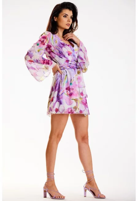Къса флорална рокля с дълъг ръкав A509