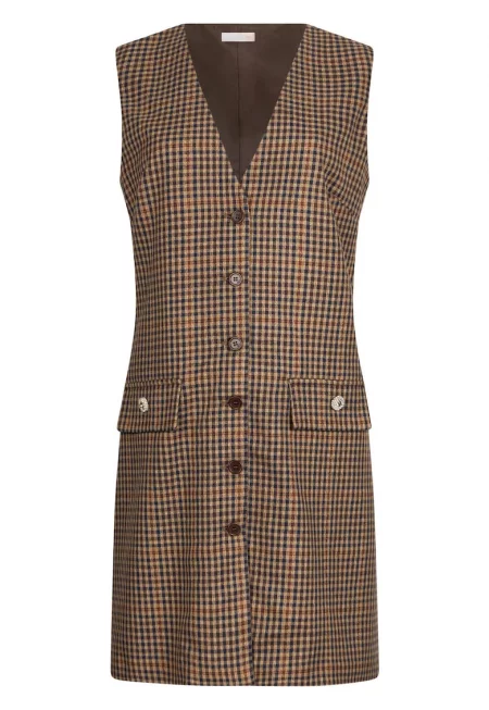 Рокля тип елек на каре - Тъмнокафяв