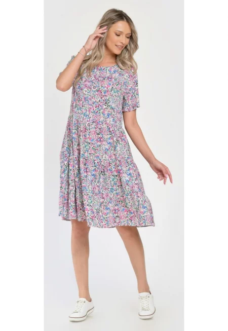 888115700-Дамска рокля с щампа на цветя - Многоцветен