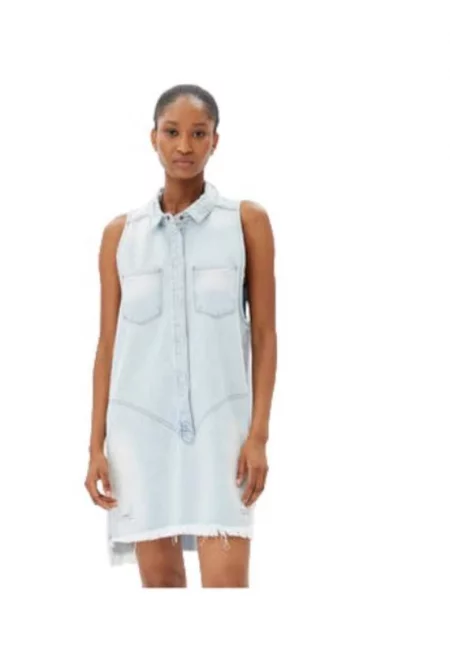 Дамска лятна рокля A2W13004 - Органичен памук - Светлосин - Светлосин
