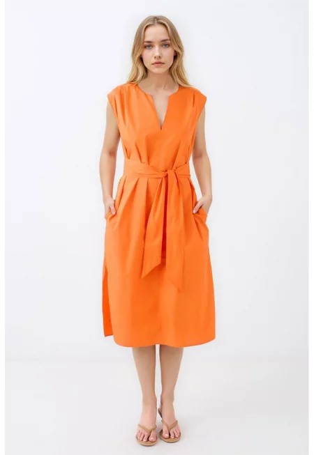 Разкроена рокля с джобове встрани - без ръкави