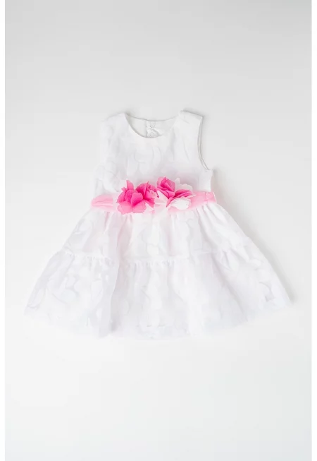 Рокля без ръкави с флорален аксесоар - Бял/Розово