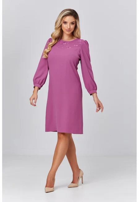 Застъпена рокля с 3/4 ръкави - Фанданго розово
