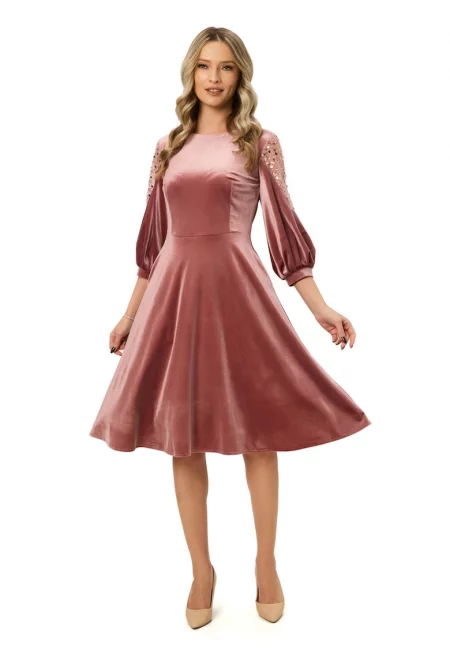 Кадифена рокля с пайети - Прашно розово