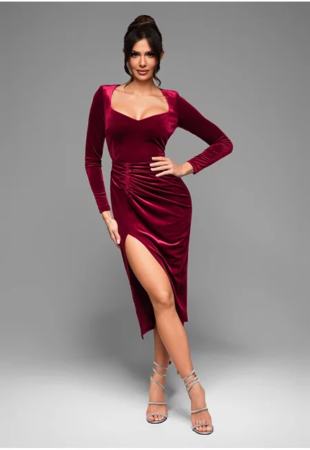 Миди вечерна рокля LACRICA LA-OM-DLR029 - Bordeaux