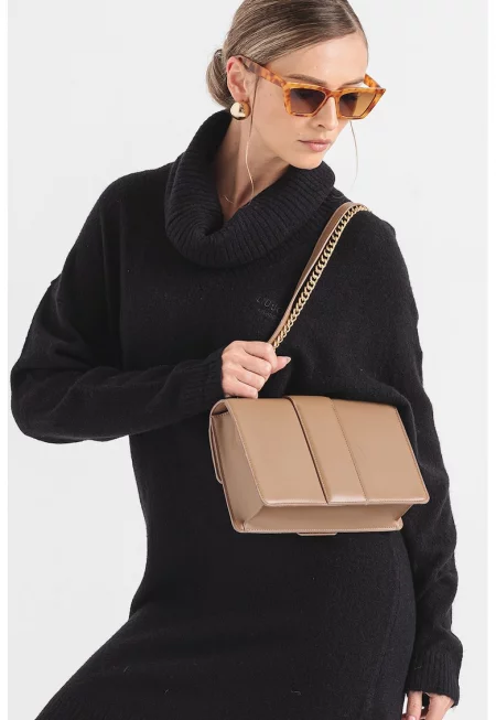 Рокля с деколте и яка Тъмнокафяв - Зелен
