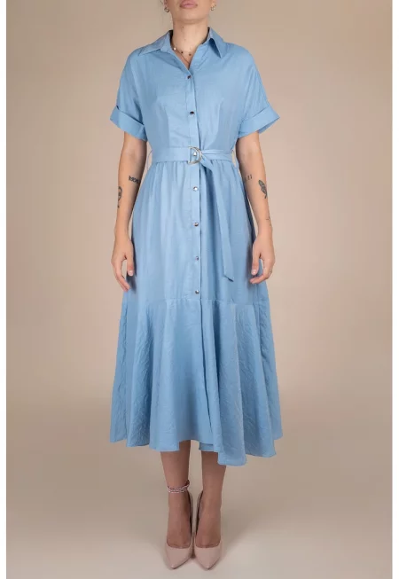 Дълга рокля А-силует от лен вълна в цвят Аква