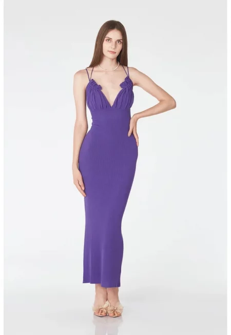 Вталена дълга рокля с шпиц - Аметист