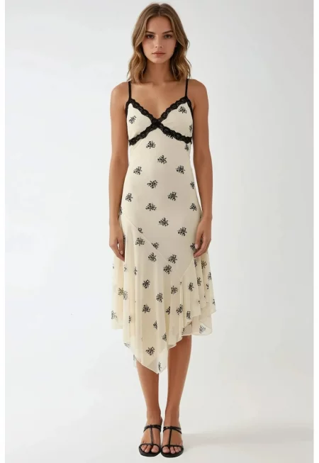 Вталена мини рокля флорален мотив - тюлен материал