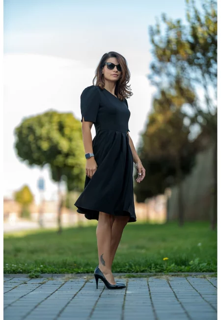Рокля с шпиц и бухнали ръкави Anias - Черен
