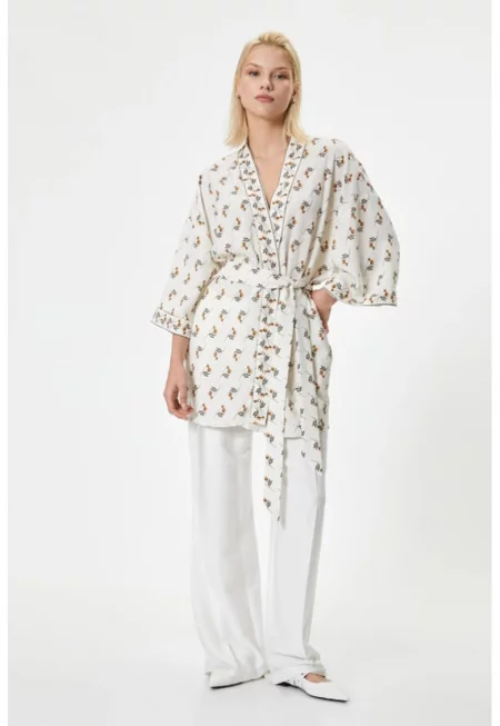 Флорално кимоно с шпиц - Слонова кост/Тъмно оранжево/Тъмно каки