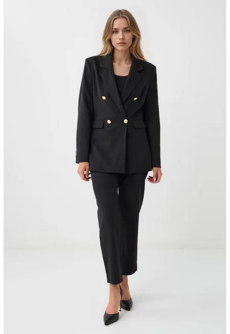 Сако с двойни ревери и джобове с капаче - Черен