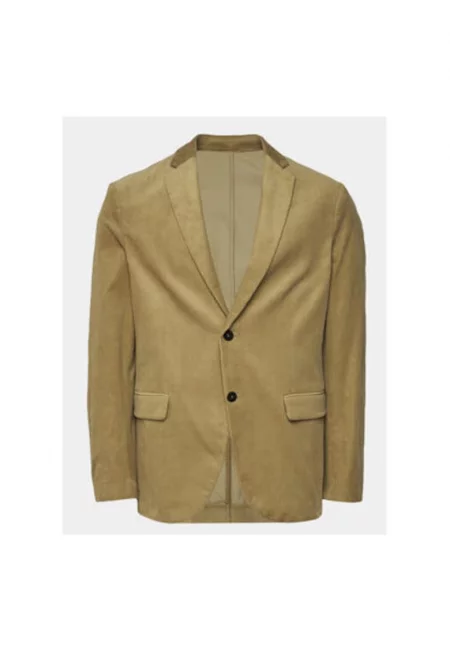 Сако SLIM от плетена материя с фина текстура OM-BLZB-0101 - Бежов - Бежов