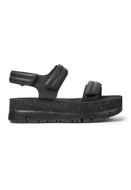 Кожени сандали със скосена подметка и велкро - Черен
