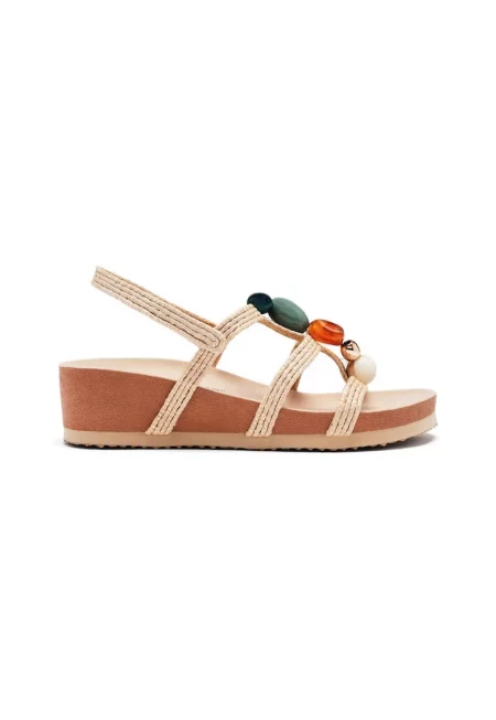 Скосени сандали Rantoul с декоративни камъни - Светло бежово