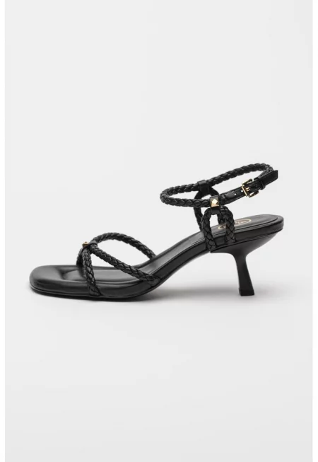 Сандали Jess от еко кожа със сплетен ефект - Черен