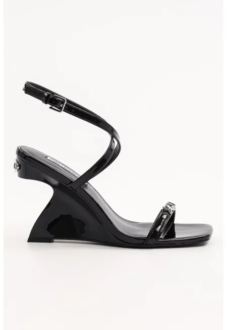 Текстилни сандали Universal със скосена платформа и велкро - Черен