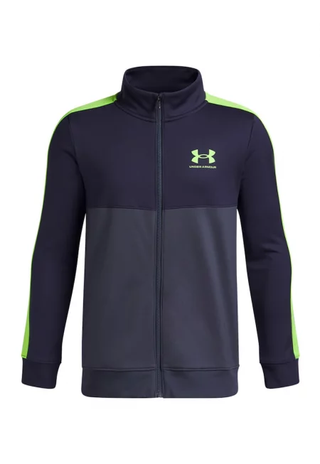 Спортен екип с цип и лого - Тъмносин/Шам фъстък зелено