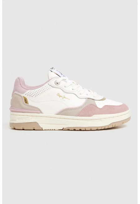 Спортни обувки с велур - Бял/Прашно розово/Бледа лила