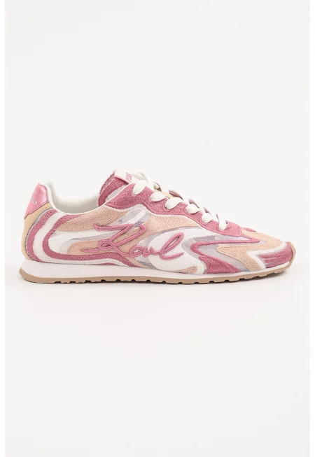 Тренировъчни обувки с велур - мрежести зони и лого - Праскова/Розово