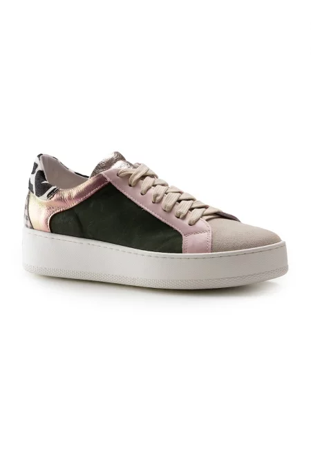 Кожени спортни обувки с връзки - Бледозелен/Сиво-кафяв/Розово