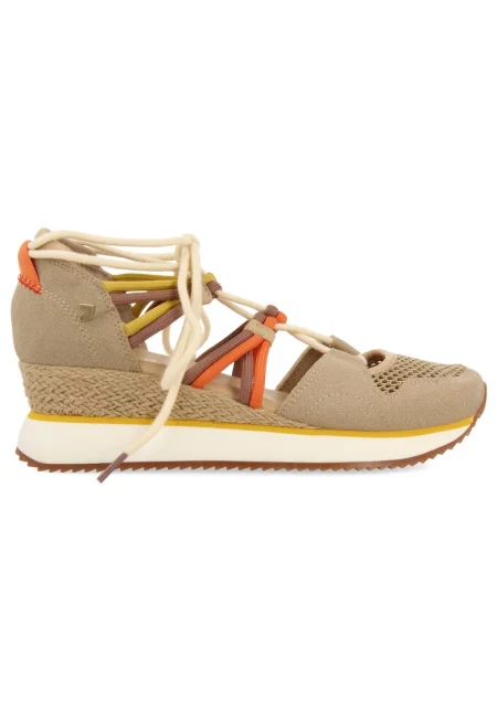 Кожени спортни обувки с велур - Бежов