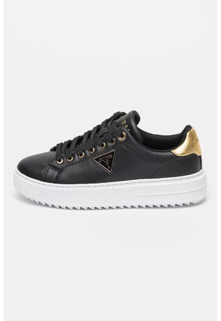 Кожени спортни обувки с лого - Златист/Черен/Бял