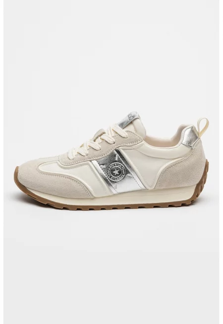 Спортни обувки с нисък профил и велур - Светло сив/Мръснобял/Сребрист