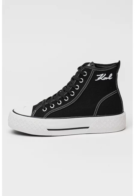 Кожени спортни обувки с равна платформа - Избеляло черно