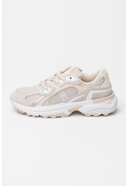 Масивни спортни обувки от велур и текстил с лого - Черен/Мръснобял