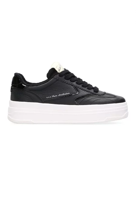 Спортни обувки от кожа и еко кожа с равна платформа - Черен