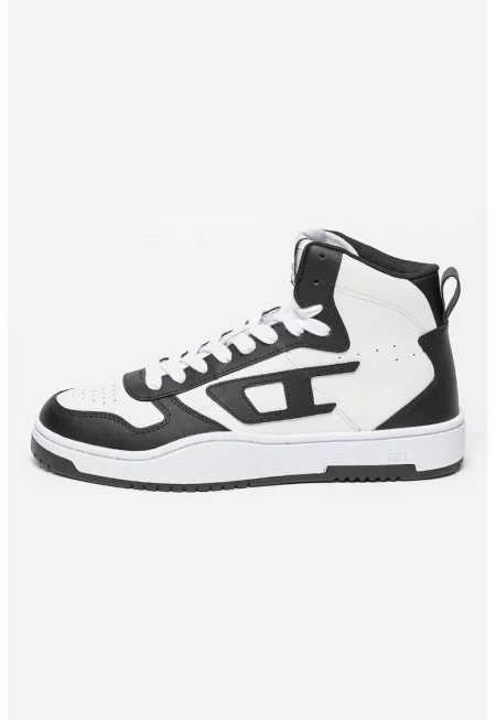 Кожени спортни обувки с висок профил - Бял/Черен