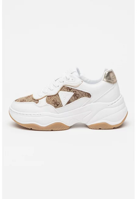 Маратонки с еко кожа и лого - Златист/Кафяв