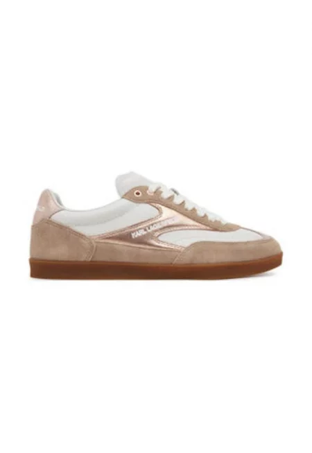 Спортни обувки с шарка и връзки - Златист/Мръснобял