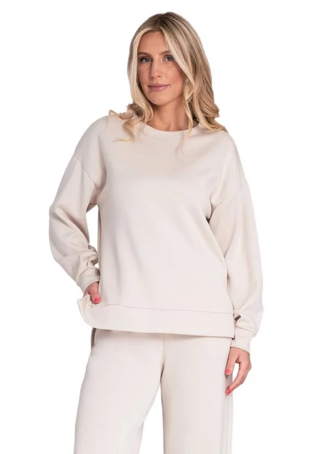 Дамски суитшърт -  M1055 - широки ръкави - бежов - памук