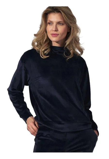 Дамски суичър тъмносин - велур - висока яка - дълъг ръкав