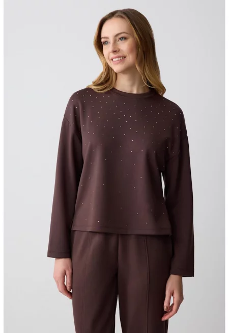 Суитшърт с овално деколте - Кафяв