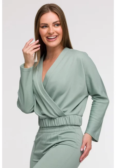 Блуза с прегънато деколте -