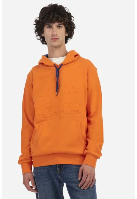 Худи с връзка и джоб кенгуру - Мандарина/Бял
