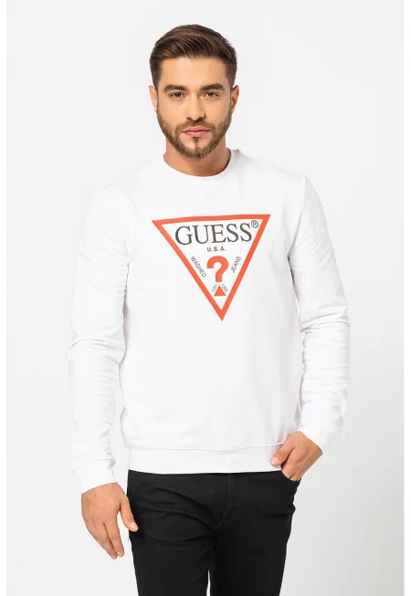 Суитшърт с овално деколте и бродирано лого - Бял/Черен